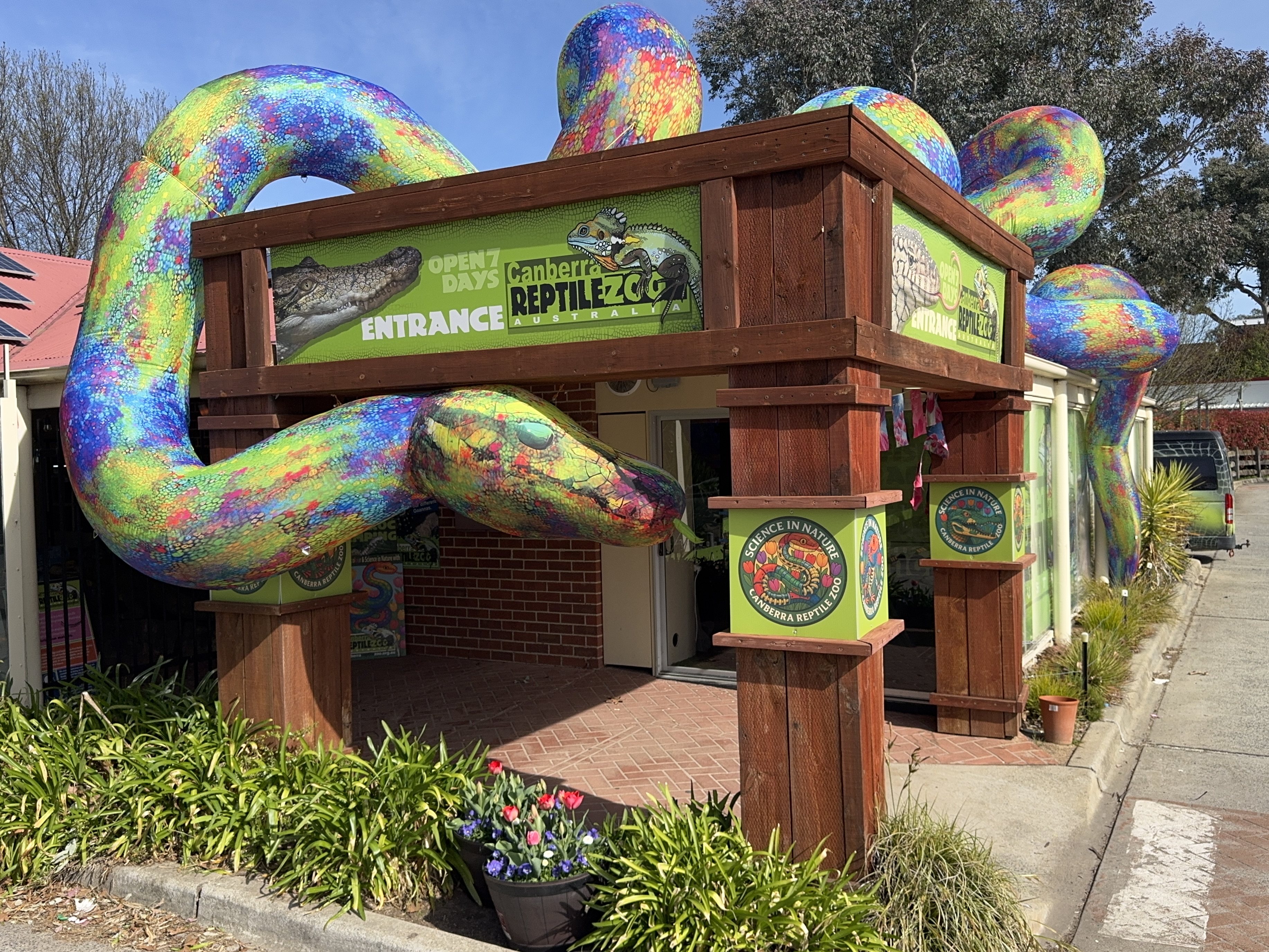 Welcome to Canberra Reptile Zoo!We are open 7 days a week and only closed on Christmas day.Where curiosity comes alive and you get closer than you think. The Canberra Reptile Zoo isn't your average zoo, it's a hands on, heart first experience built by the community, for the community. As a not-for-profit sanctuary dedicated to conserving Australia's native fauna, we connect people with wildlife in ways that inspire awe, respect, and understanding. From humble beginnings in a suburban Canberra garage back in 1999, we've grown into one of the ACT's most loved and educational wildlife destinations. Step through our doors and you'll discover a world of wonder: over 100 species of reptiles, amphibians, and native animals, cared for by passionate experts who love nothing more than sharing their knowledge. At the Canberra Reptile Zoo, you don't just see animals, you meet them. Feel the armour of a crocodile, the smooth scales of a bluetongue, or the soft feathers of a glider. Watch a python feeding, learn about conservation in action, or conquer your fear by touching a snake for the first time. Whether you're a family looking for adventure, a school group seeking education through experience, or a visitor keen to explore Australia's wild side up close, this is a place where learning meets excitement and every encounter leaves a lasting impression. Come and see why we're closer than you think and closer to nature than ever. We are located on O'Hanlon Place in Nicholls ACT, within Gold Creek Village. Find us behind Injoy Cafe, opposite the clock tower. Open 7 days a week: 10am - 5pm Admission prices: Go to ticket sales button for latest prices. ![]() Annual passes are available. Phone: 02 6253 8533 Email: canberrareptilezoo@icloud.com Come to the Zoo and touch a python, or dragons and talk face to face with the keepers! Birthday parties are available for all ages. Canberra Reptile Zoo also has a Reptiles Inc store on site for all your keeping needs and gifts. View Larger Map |